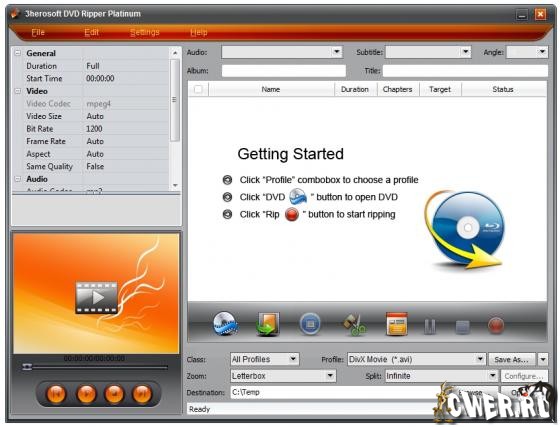 3herosoft DVD Ripper Platinum - конвертер между популярными видео файлами и граббер видео DVD в форматы для мобильных устройств, поддержка WMV, AVI, DivX, MPEG, MP4, H.264/MPEG-4 AVC, RM, MOV, XviD, FLV, 3GP, VOB (DVD), DAT (VCD, SVCD) форматов, извлечение аудио из DVD в AC3, M4A, MP3, WMA, WAV, AAC форматы, поддержка iPod, iPhone, Apple TV, Xbox 360, Zune, PSP, Pocket PC, Creative Zen, Archos и других, выбор файлов для извлечения, выбор сегмента (ролика) из видео, настройка параметров сохранения, пакетный режим конвертирования, предварительный просмотр в встроенном проигрывателе, нормализация аудио, создание и редактирование ID3v1 и ID3v2 тэгов.