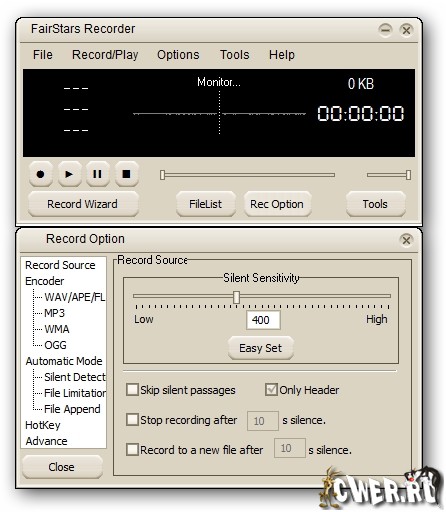 Обновилась программа для записи аудио в режиме реального времени с разных источников - FairStars Recorder. Программа записывает любой звук идущий через звуковую карту: с микрофона, интернета, аудио/видео плееров и с любых других устройств. Сохраняет записи в файлах следующих форматов: WMA, MP3, OGG and WAV, причем кодирует в вышеперечисленные форматы напрямую, минуя промежуточного создания WAV файлов. Кроме того программа умеет конвертировать файлы между форматами: WMA, MP3, OGG and WAV и имеет встроенный редактор тегов.