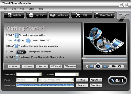 Tipard Blu-ray Converter - конвертер-граббер видео BD DVD (Blu-Ray) в другие популярные видео форматы, поддержка MPG, MPEG, MPEG2, SWF, FLV, VOB, MOD, MP4, H.264, M4V, AVI, WMV, 3GP, 3GPP, MOV , DivX, XviD, Quciktime видео, DV, MJPG, MJPEG, MPV и т.д. Программа также поддерживает High Definition видео файлы, такие как TS, M2TS, TP, HD MPEG 2, HD MEG4, WMV HD, HD MOV, H.264 HD, HD RM и т.д.Кроме того Tipard Blu-ray Converter может конвертировать и извлекать любые аудио файлы без потери качества.