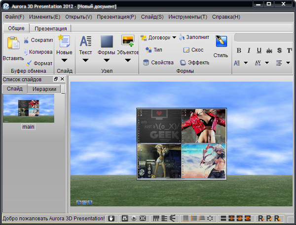 Aurora 3D Presentation — инструмент для создания 3D презентаций. Вы можете с легкостью создавать презентации добавляя изображения, текст, видео, модели, различные данные, и при этом выбрать много способов отображения и подачи презентационного материала.Не нужно больше клеить макеты! Не нужно заказывать анимацию дизайн! Не нужно разбираться в основах 3D-дизайна, не нужно учится Flash, А.Е., Photoshop и т.д., не нужно бегать по рекламным агентствам, которые возьмут с вас большие деньги! Эта программа сэкономит время и деньги и станет вашим верным помощником в бизнесе.