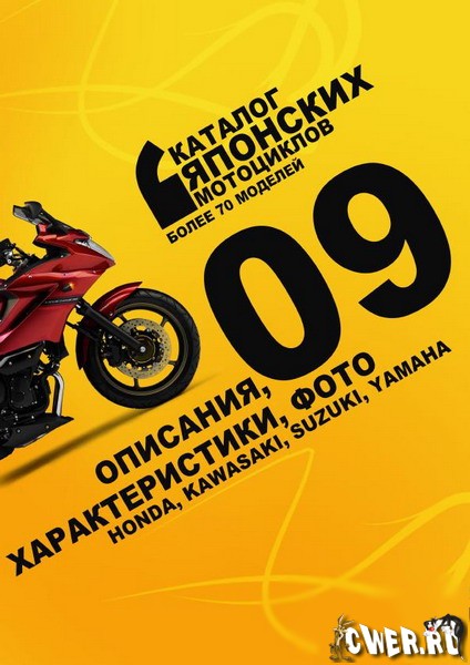 Подробный каталог японских мотоциклов Honda, Suzuki, Yamaha, Kawasaki модельного ряда 2009 года. Приведены описания, технические характеристики, фото мотоциклов.
