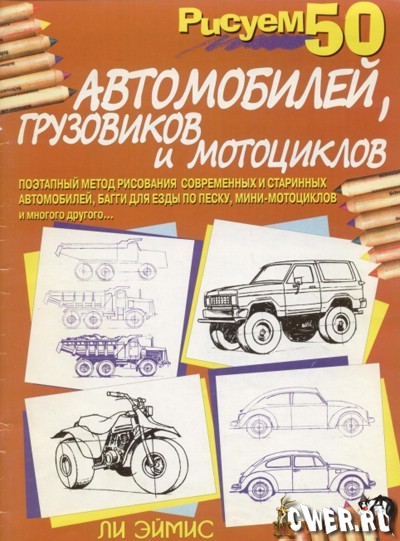Содержит пошаговые инструкции для практического рисования различных транспортных средств (легковые автомашины, грузовики, мотоциклы, цементовозы, миниавтобусы, велосипеды и пр.) в процессе освоения искусства чёрно-белой и полутоновой графики.