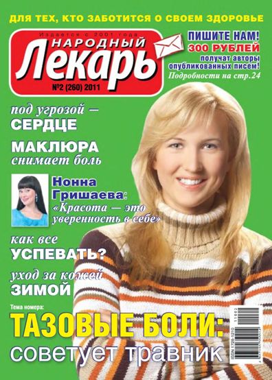 Журнал для тех, кто заботится о своём здоровье. Тема номера - тазовые боли. Также в номер вошли следующие материалы: алкоголь - убийца поджелудочной, собираем лекарственные растения зимой, сон и жизненный тонус, чем грозит перикардит, затяжные роды, рецепты из конверта, как повысить свою энергетику и всё успевать, зимний уход за кожей.