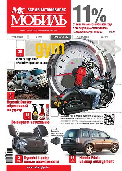 Журнал посвящен автомобильной тематике: обзоры автоаварий, угонов, проблемы дорожного движения, исторические очерки об отечественных и зарубежных автомобилях, автотуризм, рейтинги и тестдрайверы, автоспорт, советы автолюбителям, автоэкзотика.