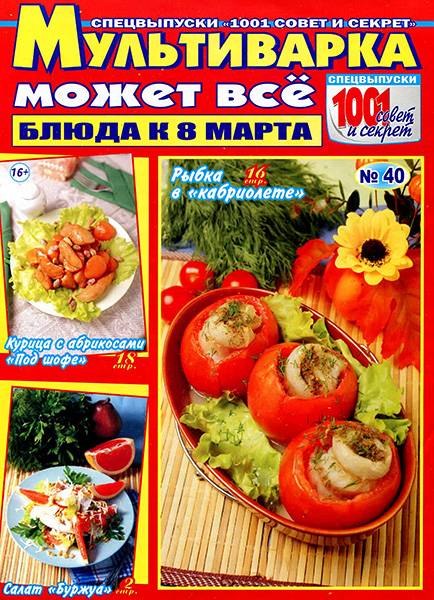 Издание составлено по письмам с кулинарными рецептами и советами от читателей «1001 совет и секрет». Лучшие из них, проверенные и одобренные сотрудниками редакции и другими читателями, собраны в этом выпуске.