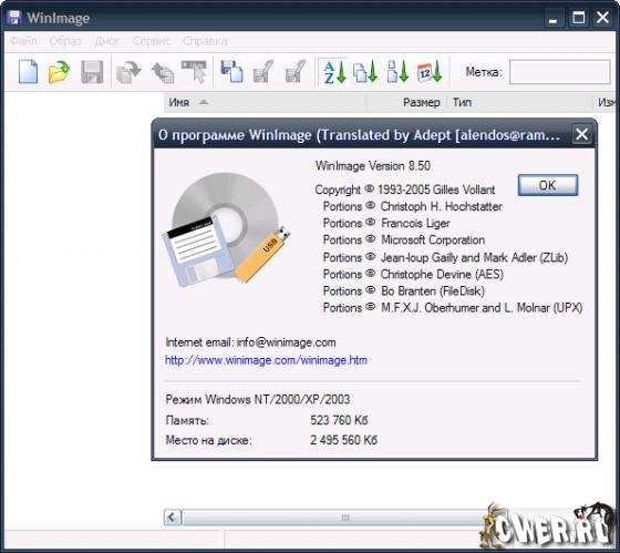 WinImage - позволяет создавать image-файлы с гибких дискет и CDROM, извлекать файлы из образа, делать пустой образ, помещать образ в незаполненный диск и т.п.