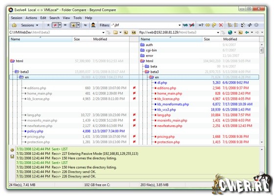 Beyond Compare - мощная утилита для сравнения файлов и папок Windows и Linux платформ, с возможностью синхронизации. Программа очень удобна в использовании.